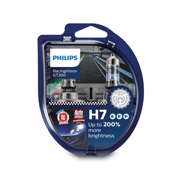 Philips RacingVision G200 H7 -ajovalopolttimot ovat tehokkaat, tieliikennekäyttöön hyväksytyt halogeenipolttimot, jotka tarjoavat jopa 200% kirkkaamman valon sekä jopa 80 metriä lakisääteistä vähimmäisetäisyyttä kauemmas kantavan valokeilan. Näiden ansiosta näet ja tulet nähdyksi entistä paremmin. Huomaat esteet ja mahdolliset vaarat aiemmin, jolloin reagointiaika kasvaa. Tämä kaikki lisää ajoturvallisuutta ja -mukavuutta huomattavasti. Philipsin RacingVision GT200 -ajovalopolttimot ovat ECE-tyyppihyväksyttyjä. Valotehoa kaipaavat autoilijat saavat käyttöönsä kirkkaan, tieliikenteeseen sallitun ajovalopolttimon, joka on sovellettavien säännösten mukainen. Valmistajan ilmoittama teho 55 W, värilämpötila 3500 kelviniä. Kanta H7.