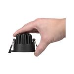 Laadukkaalla alumiinirungolla, kapealla valokeilalla ja korkealla värintoistoindeksillä (CRI>90) varustettu pyöreä alasvalo sekä kuiviin että kosteisiin tiloihin. Värilämpötila valittavissa asennusvaiheessa, Triac-himmennettävä. Moderni musta kehys sopii tilaan kuin tilaan. Teho 6, 8 tai 12W, IP44-luokitus.