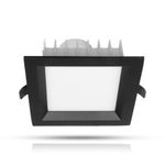 Häikäisyä ehkäisevällä muotoilulla, leveällä valokeilalla ja korkealla värintoistoindeksillä varustettu alumiinirunkoinen alasvalo sekä kuiviin että kosteisiin tiloihin, niin sisälle kuin ulos. Moderni musta kehys sopii tilaan kuin tilaan. Säädettävä värilämpötila, teho 12W / 960 lm tai 30W / 2400 lm, joko 90 tai 150 mm upotusaukkoon. IP44-luokitus.