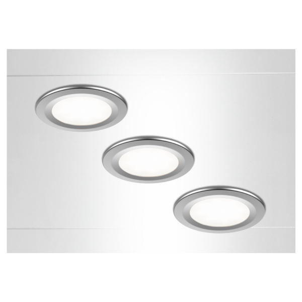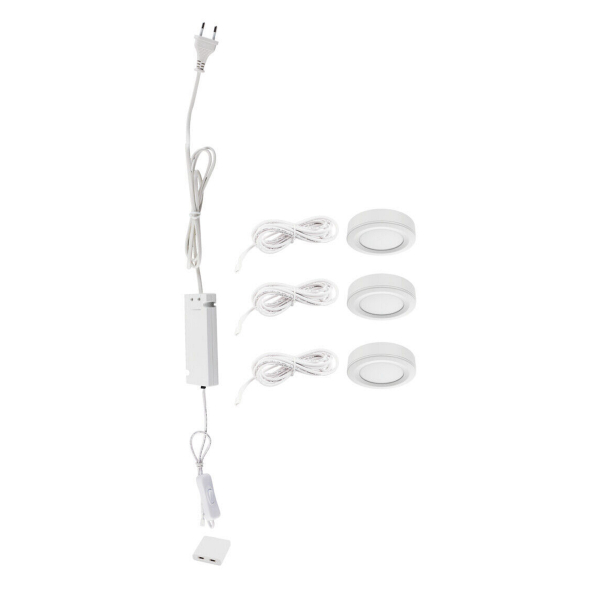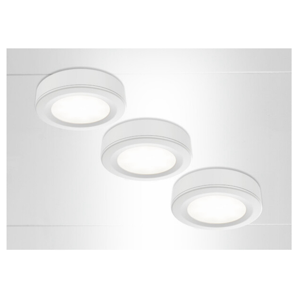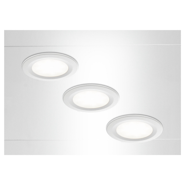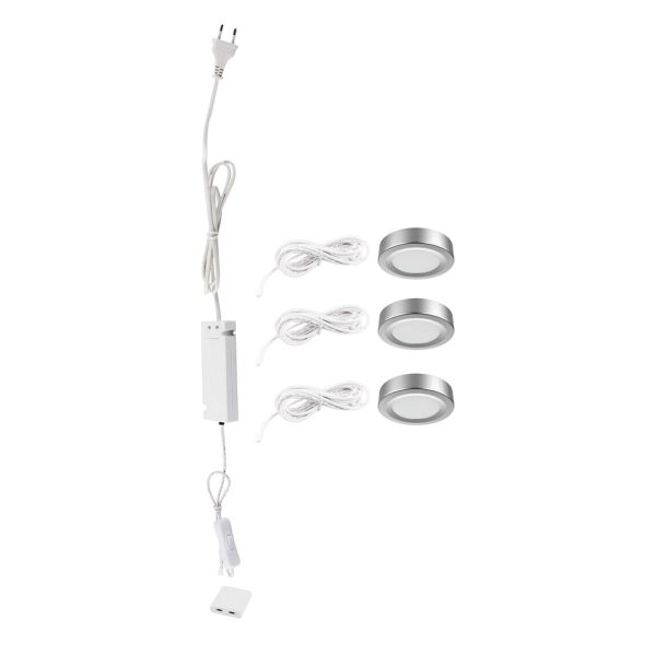 Helposti asennettava alasvalosarja sisätiloihin. Saatavilla valkoisella tai hopealla kehyksellä. Kytketään suoraan pistorasiaan, uppo- tai pinta-asennus. Valoteho 150 lm / valaisin, värilämpötila 3000K, halkaisija 65 mm.