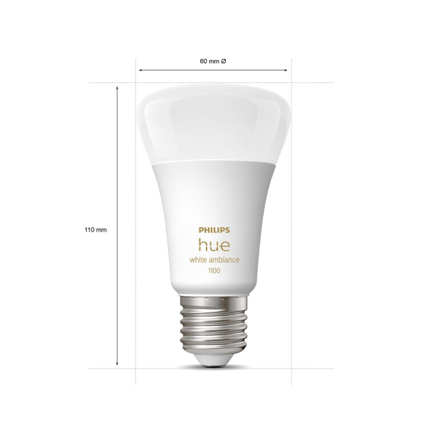 Tämän Philips Hue White Ambience E27 -aloituspakkauksen avulla voidaan lisätä kotiin älykäs valaistusjärjestelmä. Pakkaus sisältää kolme säädettävällä värilämpötilalla olevaa E27-kantaista älypolttimoa, kytkimen sekä Hue-Bridgen, joiden avulla älyvalaistusta on helppo ohjata. Polttimot voidaan vaihtaa suoraan tavallisen polttimon tilalle, ja nämä Philips Hue-sovelluksen kautta säädettävät White Ambience -polttimot sopivat loistavasti kodin yleis- ja tunnelmavalaistukseen. Polttimoiden värilämpötilaa voidaan säätää portaattomasti suoraan mukana tulevalla kytkimellä tai älypuhelimella Hue-sovelluksen kautta, kun ne liitetään mukana tulevaan Hue Bridgeen. Näiden älypolttimoiden avulla käytännössä mikä tahansa E27-polttimolla varustettu valaisin saadaan sopimaan yhteen Philips Hue-älyjärjestelmän kanssa. Näin kodin erilaiset älyvalaistusratkaisut saadaan toteutettua myös huoneissa valmiina olevien valaisinten kanssa. Philips Hue -lamput toimivat saumattomasti älykkäiden lisävarusteiden, kuten Hue-himmenninkytkimen tai Hue-älypainikkeen kanssa, minkä lisäksi lamput voi toki kytkeä päälle ja pois myös tavallisesta valokytkimestä. Tällöin lampun muistiin jää siinä viimeksi ollut valaistusasetus. Älypolttimon asentaminen on yhtä helppoa kuin normaalinkin polttimon kiinnittäminen valaisimeen. Heti, kun valaisimessa on paikoillaan LED-älylamppu, voidaan valaisinta säätää sovelluksen kautta. Polttimoiden ilmoitettu valoteho on 1100 lumenia, värilämpötila 2200 - 6500 kelviniä.