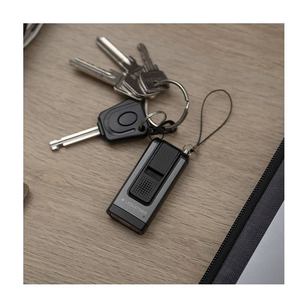 Ledlenser K6R Safety avaimenperälamppu antaa turvaa pimeässä liikkujalle, paitsi valon, myös henkilökohtaisen turvahälyttimen muodossa. Turvahälyttimessä on erittäin kova ja korkea hälytysääni sekä voimakas strobovalo jotka ovat omiaan karkottamaan turvallisuusriskin tuottajan sekä kiinnittämään muiden huomion uhkaavaan tilanteeseen. Valosta löytyy kokoisekseen vaikuttava 400 lm valoteho, ja se kulkee pienen kokonsa ansiosta vaivatta mukana niin taskussa kuin esim. käsilaukussakin. K6R Safety ladataan vaivattomasti tietokoneen USB-A portista ilman johtoa lampusta esiin taittuvan USB-A liittimen avulla. Täydellä teholla valaisin tarjoaa 80 metrin kantaman, ja pienimmällä valoteholla paloaikaa saavutetaan 4 tuntia.
