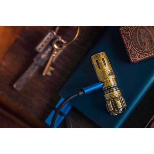 Valaisin toimii sisäänrakennetulla 130 mAh akulla, joka tarjoaa yhtäjaksoista toiminta-aikaa matalammalla tehotilalla jopa 12 tunniksi kerrallaan. Valaisimen messinkirunko on täysin vesitiivis IPX8-standardin mukaisesti, ja se kestää jatkuvan upotuksen 2 metrin syvyyteen. Latausportti löytyy valon rungosta, ja paljastuu, kun valaisinpää kierretään täysin auki. Näin myös portti on suojattu vedeltä sekä taskuissa pyörivältä pölyltä ja hiekalta. Nopean USB-C-latauksen ansiosta valaisin latautuu aivan tyhjästä täyteen ainoastaan 100 minuutissa. Kahden vuoden (24 kk) takuu!