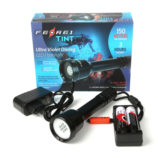 Ferei TINT on erityisesti ammattikäyttöön valmistettu, laadukas 455 nm UV-sukelluslamppu, joka on varustettu kymmennellä 3W ultraviolettiledillä. Valaisin toimii erityisen hyvin täydentävänä valaistuksena joko päivällä tai yöllä, etenkin valokuvauksessa, joka vaatii normaalia suurempaa värien herkkyyttä. Ferei TINT -valaisinta käytetään kahdella 18650-litiumioniakulla, joka tarjoaa useiden tuntien toiminta-ajan yhdellä latauksella.