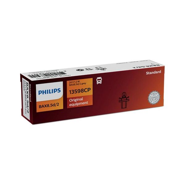 Philips BAX 1.2W 24V 8,5d muovikantainen halogeenipolttimo erityisesti raskaan kaluston 24V-järjestelmiin. Polttimon kanta B8,5d/2, nimellisteho 1.2W.