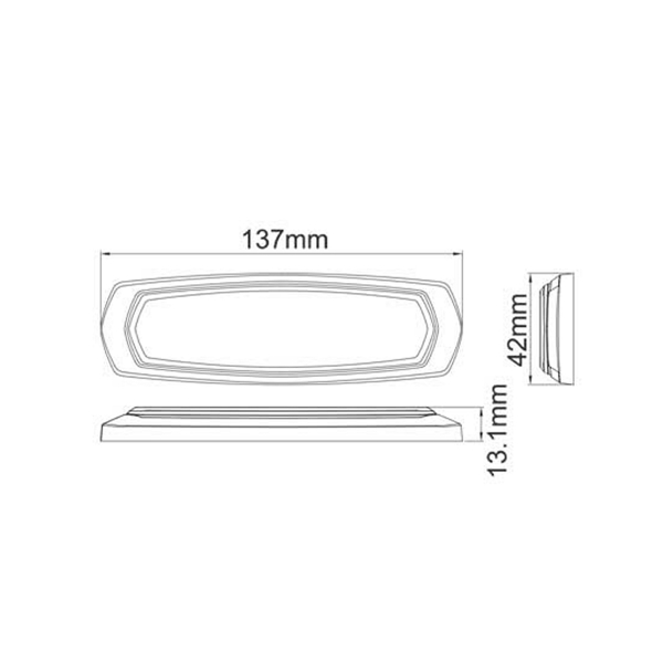 Punaisella ja sinisellä valolla varustettu pinta-asennettava huomio- ja hälytysvalo. 28 eri toimintatilaa, synkronoitavissa yhteen. Sopii 12-24V virtaan. Koko 137 x 42 x 13 mm.