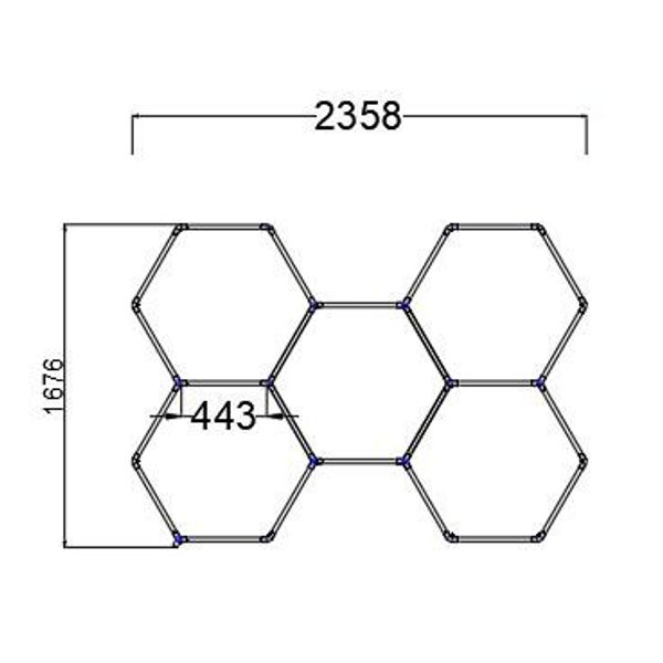 5 Hexagon-valoelementin kokonaisuus, joka luo tilaan kuin tilaan ainutlaatuisen ilmeen, tasaisen ja kirkkaan sekä vireystilaa ylläpitävän valaistuksen! Kiinnitys onnistuu ruuveilla niin katto- kuin seinärakenteisiinkin. CE-hyväksytty.