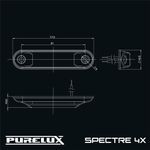 Purelux Spectre 4X Dark on tyylikäs pinta-asennettava äärivalosarja, joka on täsmäisku turvallisuutta ja tyyliä arvostavien ammattikuljettajien ajoneuvoihin. Sarjaan kuuluu kolme eri mallia, joista kaikki ovat ECE R148-standardin mukaisesti tieliikennekäyttöön hyväksyttyjä: valkoisilla ledeillä varustetuilla valoilla voidaan kattaa ajoneuvon eteen näytettävät äärivalot, punaisilla ledeillä ajoneuvon taakse ja orannseilla ledeillä ajoneuvon sivuille näytettävät huomiovalot. Valonlähteenä valaisimissa toimii neljä suorituskykyistä lediä, jotka hohtavat upeasti kevyesti tummennetun rungon läpi merkiten ajoneuvon linjat selkeästi. Vaikka valot on helposti erotettavissa niin pimeän kuin hämäränkin aikaan, on niiden virrankulutus huomattavasti alhaisempi kuin monissa muissa äärivaloissa. Tämä mahdollistaa useamman äärivalon asentamisen samaan ajoneuvoon ilman, että laturin kestosta tarvitsee olla huolissaan.