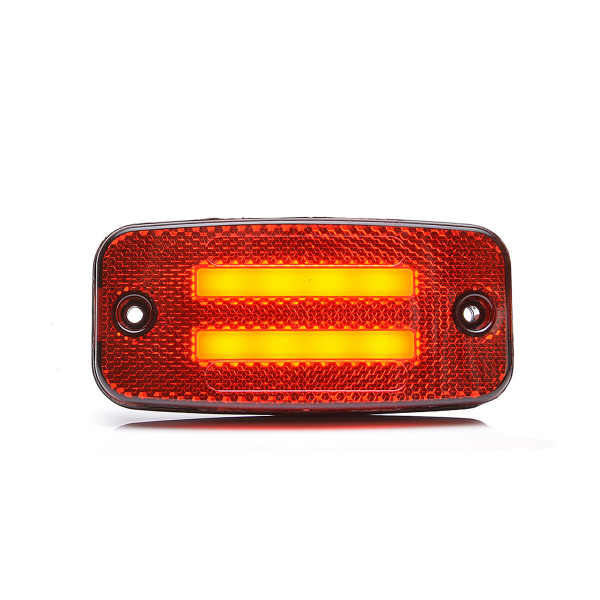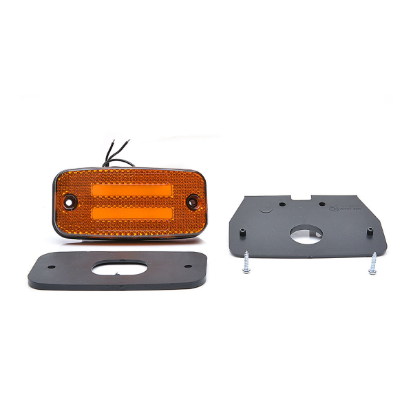 Kaksirivinen sivumerkki-/huomiovalo, joka soveltuu niin 12V- kuin 24V-järjestelmiin. Saatavilla oranssina (tarkoitettu sivumerkkivaloksi) ja punaisena (tarkoitettu taakse asennettavaksi).