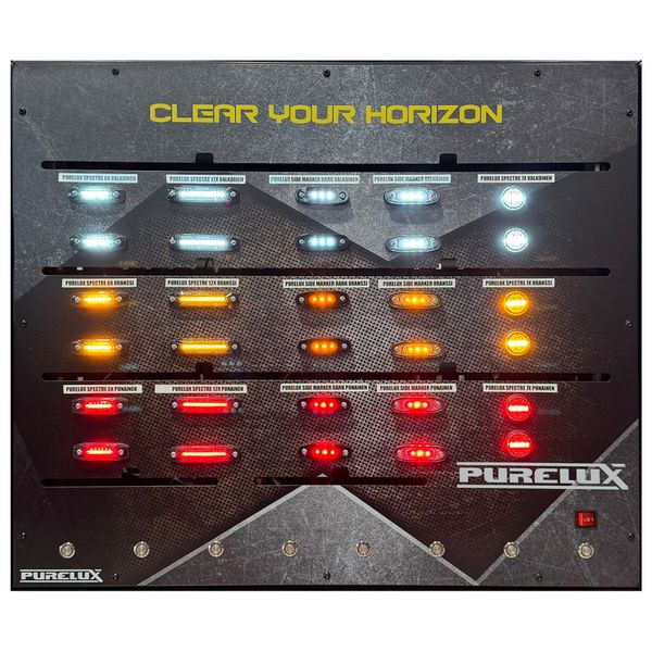 Purelux Spectre 12X on uuden sukupolven huomiovalo / äärivalo, joka täyttää autoilevan ammattilaisen kaikki tarpeet, hyväksytysti! Tätä valoa voidaan käyttää joko valkoisella, punaisella tai oranssilla valolla, ja haluttu väri on helposti valittavissa oman johtimensa kautta. Tämän ansiosta sama valo sopii niin ajoneuvon eteen tai taakse kuin myös sivullekin asennettavaksi, sillä väri voidaan asettaa asennuspaikan tai tilanteen mukaan sopivaksi. Spectre 12X sopii niin raskaaseen kalustoon sekä pakettiautoihin kuin myös messuilla kiertäviin, erikoisrakenneltuihin ajoneuvoihinkin! Kirkkaan linssin alta häämöttävä musta piirilevy tekee valosta tyylikkään myös sammuksissa, ja äärimmäisen moderni ulkonäkö ja kaunis valonjakauma vangitsevat katseen niin tienpäällä kuin parkissakin.