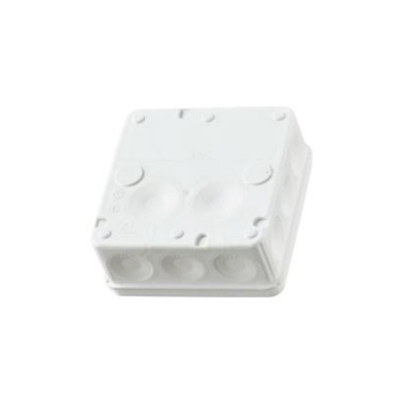 Kiinteillä ja pehmeillä kalvotiivisteillä varustettu jäykkärunkoinen, kannella varustettu jakorasia. Yhteensä 14 läpivientiä, 12 kpl sivuissa (max. 17 mm) ja 2 kpl pohjassa (max. 19 mm). IP65-luokitus.