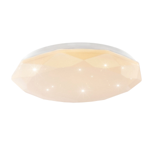 Tyylikäs, timantinmallinen plafondi-valaisin, jota voidaan käyttää kaikissa kodin kuivissa sisätiloissa, kuten makuuhuoneessa. Valaisimessa on säädettävä värilämpötila ja himmennys kaukosäätimellä. Ilmoitettu valoteho 2600 lm, värilämpötila 2700 - 6500 K.