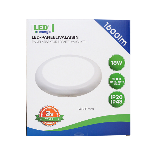 Led Energie Air on pinta-asennettava yleisvalaisin sekä kotiin että julkisiin tiloihin. Valaisimessa on säädettävä värilämpötila,joka valitaan ennen asennusta joko 3000, 4000 tai 6500 K, jolloin valaisimesta saadaan sopiva vaihtoehto mihin tahansa tilaan. Valaisin on helppo asentaa mukana tulevalla asennusraudalla, joka sopii esimerkiksi jakorasian päälle asennettavaksi. Ilmoitettu valoteho 1600 lumenia, värilämpötia joko 3000, 4000 tai 6500 kelviniä. Halkaisija 230 mm.