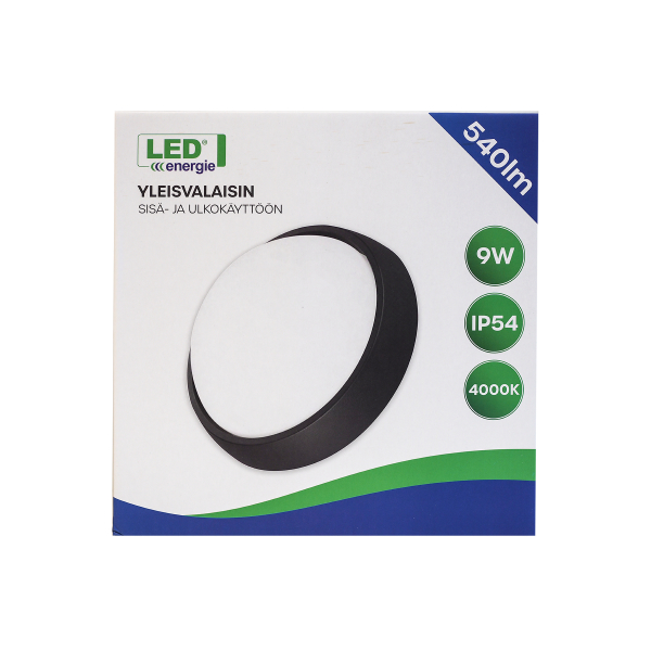 Led Energie Max on tehokas yleisvalaisin sekä kodin kuiviin että kosteisiin tiloihin, esimerkiksi olohuoneeseen tai kylpyhuoneeseen. Valaisin on IP54-luokkaa, joten se soveltuu hyvin myös ulkokäyttöön. Tyylikäs musta kehys, voidaan asentaa joko kattoon tai seinään. Ilmoitettu valoteho 540 lumenia, värilämpötila 4000 kelviniä. Rungon halkaisija 260 mm.