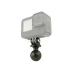 Kestävä RAM-kiinnike GoPro-sovittimella varustetuille kameroille, valaisiille tai muille pienille laitteille. Kiinnike on varustettu B-koon pallolla ja se sopii n. 0-1 kg painoisten esineiden kiinnitykseen.