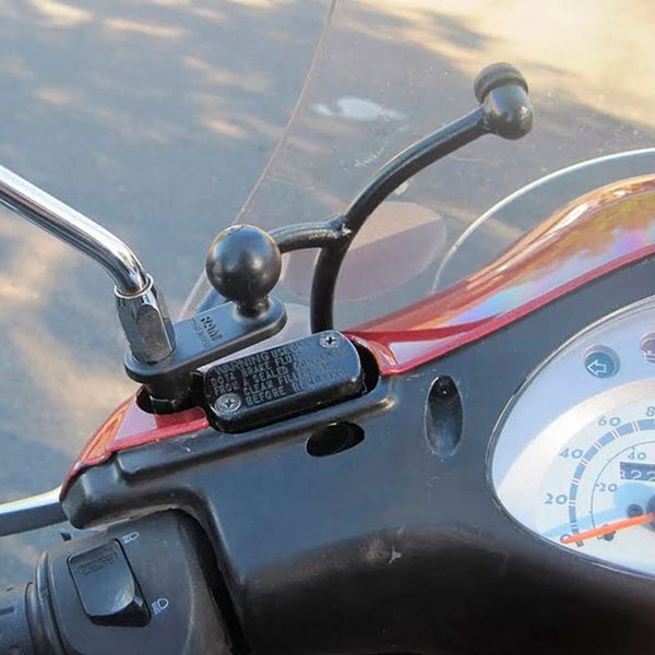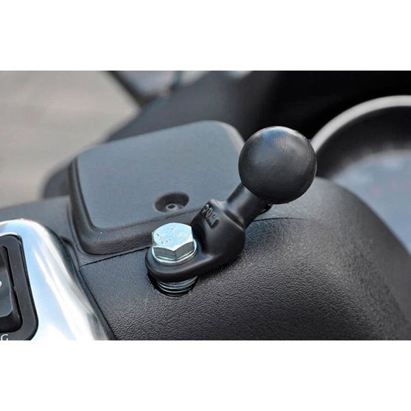Laadukas, 8, 9 tai 11 mm pulttiin kiinnitettävä RAM-kiinnike B-koon pallolla. Mahdollistaa yhdessä vastakappaleen kanssa esim. pienehkön valon kiinnityksen moottoripyörän sivupeilin pulttiin. B-koon pallo sopii n. 0-1 kg painoisten esineiden kiinnitykseen.