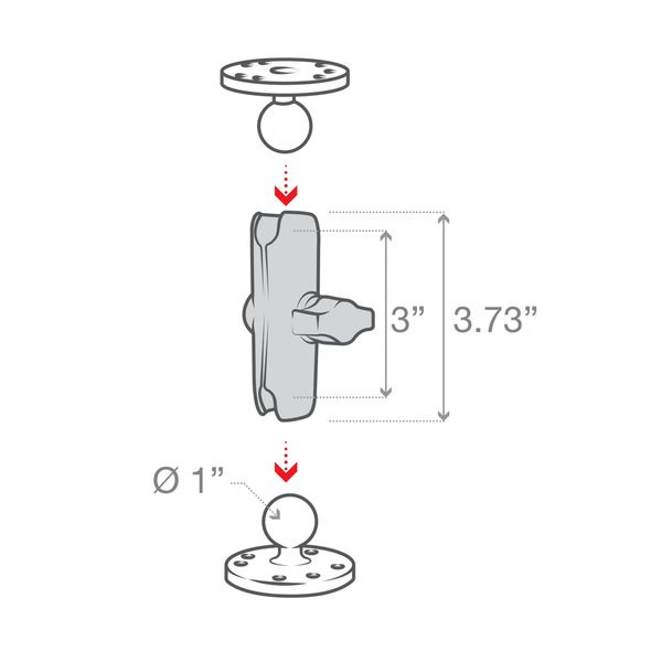 Laadukas ja lujatekoinen RAM-kiinnike, jonka kumpaankin päähän saadaan kiinnitettyä RAM:n B-koon palloilla varustetut adapterit. Yhdessä adaptereiden kanssa tämä kiinnike mahdollistaa n. 0-1 kg painoisten esineiden helpon kiinnityksen ja joustavan säätämisen.