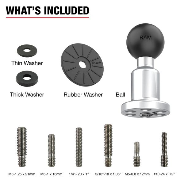 RAM Mounts Gim-Ball Fishfinder Gimbal Base Adapter on kestävä ja laadukas RAM-kiinnike, joka mahdollistaa B-koon pallolle suunniteltujen vastakappaleiden helpon kiinnityksen mm. suurimpaan osaan kaikuluotaimia, GPS-laitteita sekä karttaplottereita. Yhdessä vastakappaleen kanssa tämä kiinnike mahdollistaa esim. puhelimen, kameran tai muu pienehkön esineen helpon ja tukevan kiinnityksen sekä joustavan säätämisen. Pallo on yhteensopiva kaikkien B-kokoisten RAM-kiinnikkeiden kanssa. Kiinnike on valmistettu veneteollisuudessa käytetystä alumiinista ja pallo on päällystetty kumilla. Kiinnikkeen mukana toimitetaan useita kiinnityspultteja sekä naarmuuntumista ehkäisevä kuminen aluslevy.