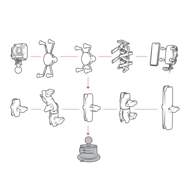 RAM Mounts Twist-Lock™ Suction Cup Base with Ball imukuppikiinnityksellä sekä nivelenä toimivalla B-koon pallolla varustettu laadukas ja kestävä kiinnike pienten esineiden kiinnitykseen. Yhdessä erilaisten vastakappaleiden kanssa tämä kiinnike mahdollistaa esim. pienen työvalon, valaisimen, puhelimen, kameran tai muun pienehkön esineen helpon kiinnityksen mihin tahansa sileään ja tasaiseen pintaan. Pallo on yhteensopiva kaikkien B-kokoisten RAM-kiinnikkeiden kanssa, ja yhdessä vastakappaleen kanssa se mahdollistaa kiinnikkeeseen asennetun laitteen joustavan säätämisen. Kiinnikke ja pallo on valmistettu veneteollisuudessa käytetystä kestävästä alumiiniseoksesta, ja pallo on päällystetty kumilla. Imukupin halkaisija 3.3" (84 mm).