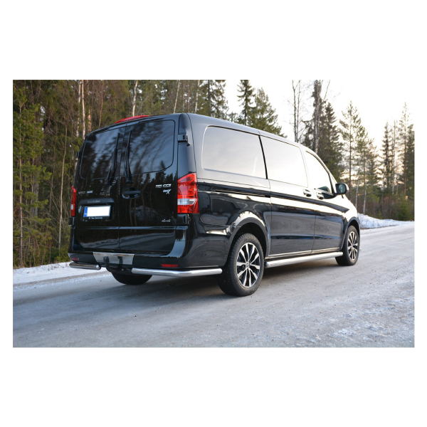 Vuoden 2015 ja uudempien Mercedes-Benz Vito ja V-sarjan SWB -malleihin sopivat kylkiputket. Sopii myös AMG-levikkeillä oleviin malleihin. Putken halkaisija 76 mm.
