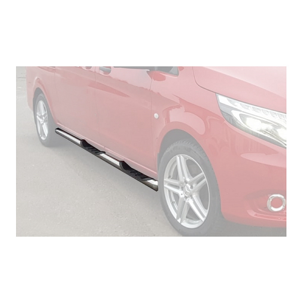 Askelmilla varustetut kylkiputket vuoden 2015 ja uudempiin Mercedes-Benz Vito ja V-sarjan SWB -malleihin. Mukana mallikohtaiset kiinnikkeet sekä asennusohjeet. Putket ruostumatonta terästä