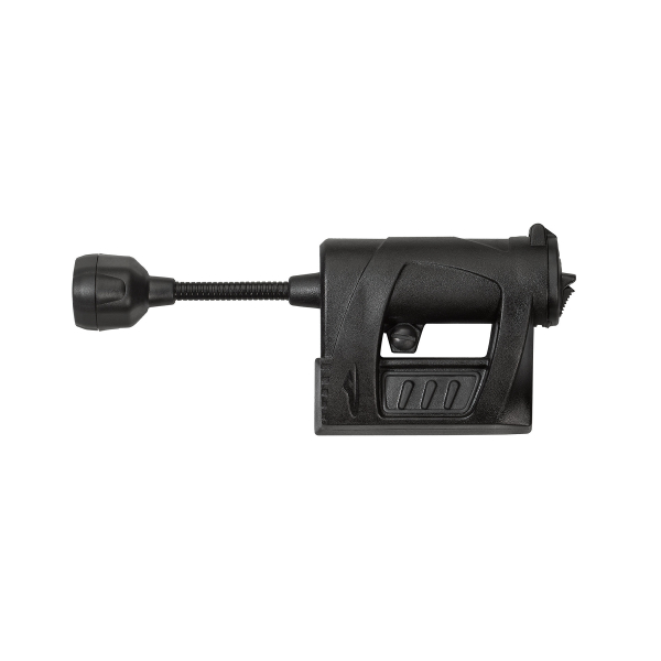 Käyttöönotto: Avaa paristokotelo työntämällä lukitusvipu nuolen osoittamaan suuntaan. Aseta paristo valaisimen sisään + -napa edellä ja sulje luukku. Asenna valaisin suoraan kypärän ARC-kiskoon avaamalla lukitusruuvi, liu'uttamalla valo paikoilleen ja kiristämällä ruuvi takaisin. Samalla tavoin valaisin kiinnittyy muihin mukana toimitettuihin kiinnikkeisiin.