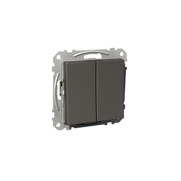 Scneider Exxactin uppoasennettava 5-kytkin, eli kruunukytkin. Kytkin toimii jousiliitoksella, ja sen liittimiin voidaan kytkeä maksimissaan kaksi johdinta ja kaksi lisäliitintä. Kytkinpaketissa on pikakiinnitys, mutta se voidaan kiinnittää myös ruuvikiinnityksellä. IP21-luokituksen mukaisesti suojattu, eli soveltuu kuiviin sisätiloihin, mutta voidaan haluttaessa päivittää IP44-luokituksen mukaiseksi tiivistyspaketilla uppokojerasia-asennuksiin tai erityiseen IP44-pintakojerasiaan. Kytkin voidaan asentaa 250V jännitteeseen, max. virta 16A. Upotussyvyys 15 mm, joten soveltuu hyvin myös kohteisiin, joissa vaaditaan matalaa asennussyvyyttä. Kytkimen mitat 71 x 33 mm. Saatavilla joko valkoisena tai antrasiitin värisenä.