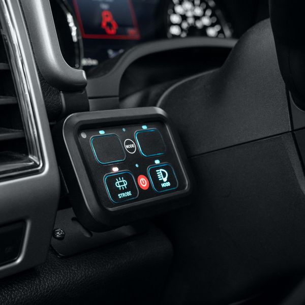 Kytkinpaneelista kaikki sen taakse kytketyt valot saadaan palamaan joko tasaisena, hetkellisesti (painamalla nappia pohjassa) tai vilkkuvana. Toimintoa voidaan vaihtaa painamalla paneelin keskellä olevaa Mode-painiketta nopeasti kaksi kertaa, jonka jälkeen kytkimen yläpuoliset led-indikaattorit alkavat vilkkumaan. Tämän jälkeen paina kytkintä, jonka toiminnan haluat muuttaa. Näin esimerkiksi erillistä vilkkurelettä ei tarvita, jotta valot saadaan vilkkumaan! Lisäksi paneeli on varustettu kätevällä muistitoiminnolla, eli se sytyttää valot samassa tilassa, joka oli käytössä ennen virtojen sammuttamista.