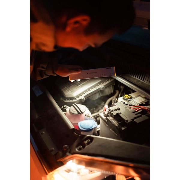 Ledlenser AF2R Work on erittäin kätevä ja monikäyttöinen työvalaisin integroidulla viivaimella täydellinen esim. sähköasentajalle tai autokorjaajalle. Valaisin kiinnittyy helposti magneetilla, tarroilla tai koukuilla metallipintoihin tai riippumaan narusta. Toki valo voidaan asettaa myös esim. pöydälle valaisemaan työkohdetta. Sisäänrakennettu akku ladataan nykyaikaisesti USB-kaapelilla, täyteen ladattuna valaisin palaa 1000 lm teholla 1 tunti 45 minuuttia. Kevyt ja pienikokoinen valaisin on helppo kuljettaa mukana, missä ikinä valoa tarvitaankin.