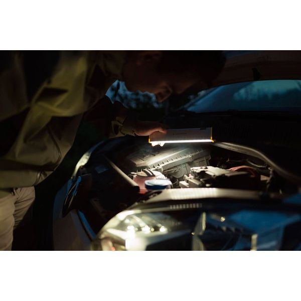 Erittäin kätevä ja monikäyttöinen työvalaisin integroidulla viivaimella. Valmistajan ilmoittama maks. valoteho 1000 lumenia, kantama 45 metriä. Mukana myös punavalotoiminto.