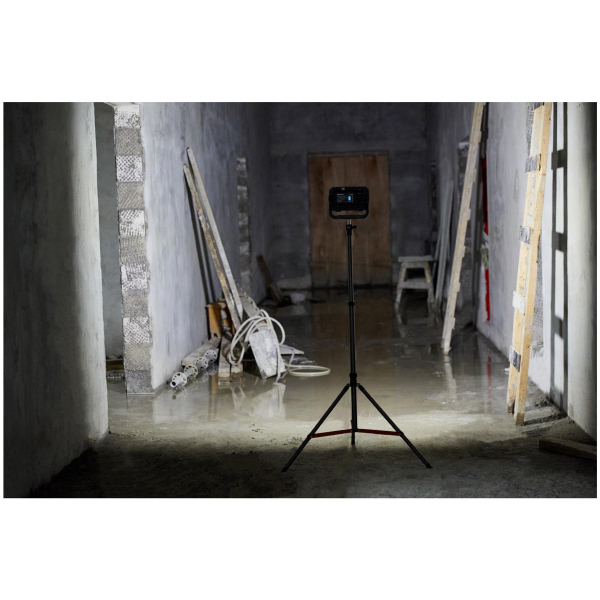 Kauko-ohjattava akkukäyttöinen työmaavalaisin, joka tarjoaa laajan ja tehokkaan valokeilan. Soveltuu niin työmaille, halleihin kuin pihankin valaisuun! Säädettävä värilämpötila ja kirkkaus. Ilmoitettu valoteho 3000 lm, kantama 75 m. IPX5-luokitus.