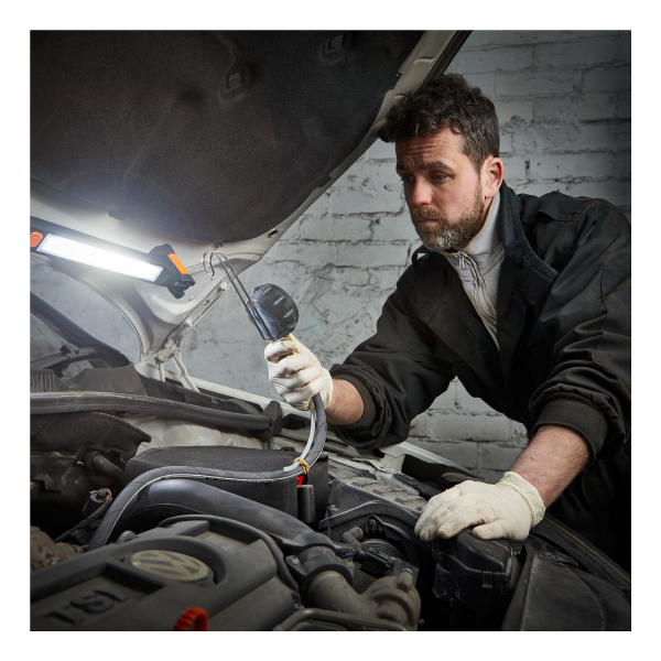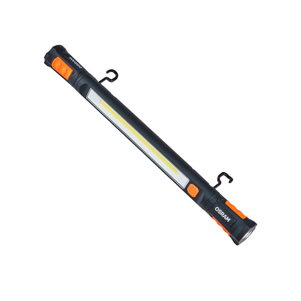 Osram LEDinspect Utility 1000 on erittäin kätevä ja monikäyttöinen työvalaisin esim. autokorjaamoille. Magneettisten jalkojen ja ripustuskoukkujen avulla valaisin saadaan kiinnitettyä metallipintoihin tai riippumaan esim. narusta. Toki valo voidaan asettaa myös esim. pöydälle valaisemaan työkohdetta. Jalakset pyörivät 180° ja runko täydet 360°, jolloin valo voidaan suunnata aina haluttuun suuntaan. Valaisimen kyljestä löytyy todella leveästi valaiseva valonlähde, josta löytyy kaksi eri kirkkaustasoa (1000 ja 400 lm). IK07- suojausluokituksen mukaisena valaisin kestää iskuja, joten työkäytössä valon kestosta ei tarvitse olla huolissaan. Kahden vuoden takuu!