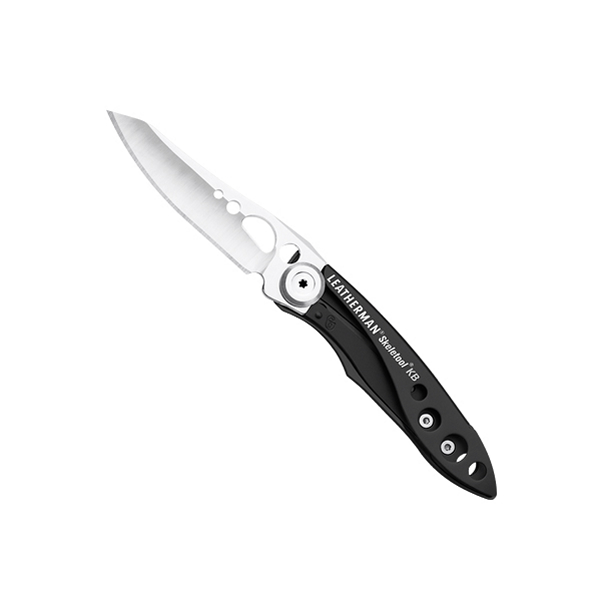 Leatherman Skeletool KB on valmistajansa taittoveitsimalliston tyylikästä kermaa. Tyylikkäästi muotoiltu Skeletool KB painaa vaivaiset 42.5 grammaa, ja taitettuna se vaatii tilaa alle 10 cm, joten se kulkee kevyesti ja helposti mukanasi missä ikinä kuljetkin. Veitsen kahvaosa on muotoiltu istumaan käteen, mikä takaa varman ja tukevan otteen tilanteessa kuin tilanteessa. Muotoiltu kahva helpottaa myös käyttöä, ja sen ansiosta veitseen voidaan kohdistaa enemmän voimaa. Mustaa kahvaa koristaa Leatherman- teksti, eli keneltäkään ei jää huomaamatta käyttäjän laatutietoisuus. Veitsen lisäksi Skeletool KB:sta löyyy myös pullonavaaja ja ripustusklipsi. 25 vuoden Leatherman-takuu!