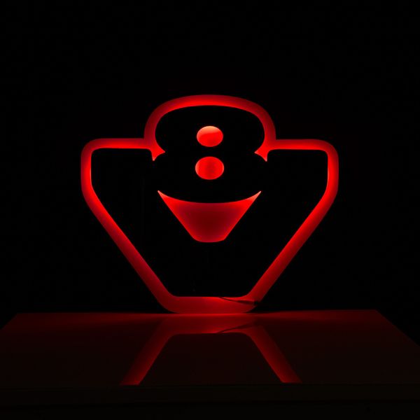 Punaisella led-valolla varustettu supertyylikäs V8-kyltti koristeeksi raskaan kaluston ajoneuvoihin, taukotiloihin tai vaikka makuuhuoneeseen. Kyltti on tyylikäs koriste sekä päiväsaikaan että varsinkin pimeällä, jolloin kyltissä oleva valo loistaa V8-tekstin taustalta tuoden tekstin hienosti esiin. Itse kyltti saatavilla sekä mattapintaisena että kiiltävän harmaana, lähes peilipintaisena. Tausta on valkoinen, josta harmaa teksti erottuu selkeästi päivän valossakin. Johdossa valmiina tupakansytytinadapteri jolla kyltti voidaan kytkeä tupakansytytinpistokkeeseen mutta tarvittaessa johdot voidaan leikata poikki ja kytkeä myös ilman tupakansytytintä. Toimii 24V jännitteellä eli sopii suoraan esim. raskaan kaluston asennuksiin. Mikäli kyltti halutaan kytkeä verkkovirtaan, onnistuu se 24V muuntajan avulla.