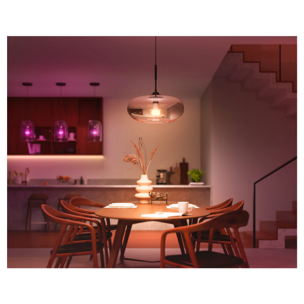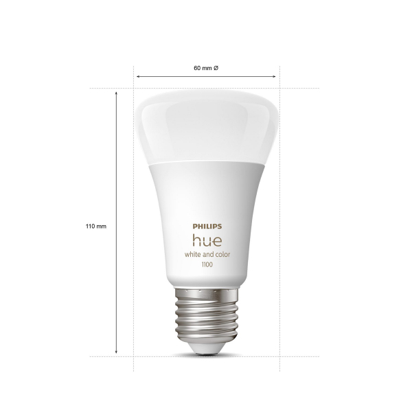 Himmennettävä ja väriä vaihtava E27-kantainen Philips Hue-älypolttimo, jota voidaan säätää puhelimen tai Philips Hue Bridgen kautta. Voidaan vaihtaa tavallisen polttimon tilalle. Polttimon teho 9W / 1100 lm.