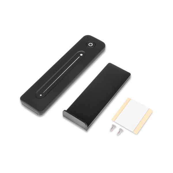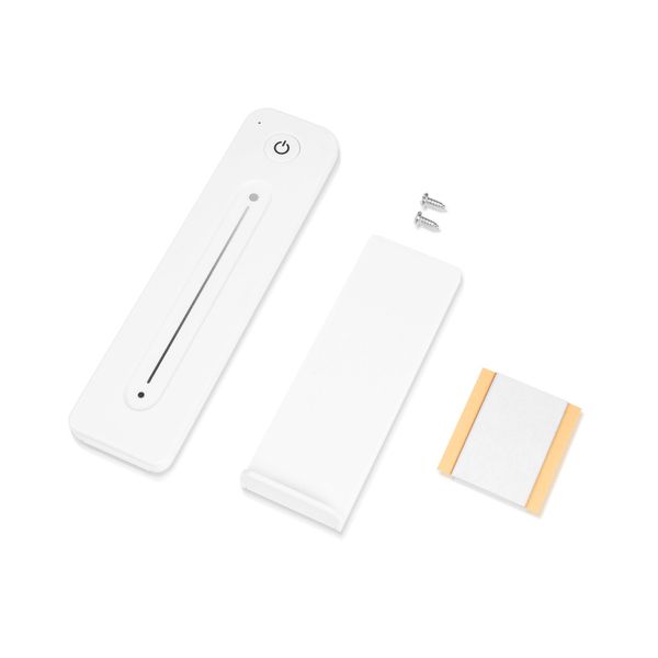 Pakkauksen mukana toimitetaan kaukosäätimelle suunniteltu siro seinäkiinnike, johon säädin kiinnittyy sen takapuolella olevalla magneetilla. Näin kaukosäädin on helppo irrottaa käytön ajaksi ja palauttaa takaisin kiinnikkeeseen käytön jälkeen, jolloin se pysyy aina tallessa. Seinäkiinnike voidaan kiinnittää seinään joko mukana toimitettavilla kiinnitysruuveilla tai pitävällä teipillä. Kaukosäädin toimii yhdellä CR2032-paristolla (sis.), joka kestää jopa noin vuoden verran, eli paristoa ei tarvitse olla jatkuvasti vaihtamassa. Kaukosäädin on tarkoitettu kuiviin sisätiloihin (IP20). Saatavilla mustana tai valkoisena. Kahden vuoden (24 kk) takuu!