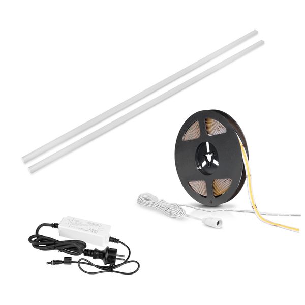 Setistä on saatavilla 200 cm, 250 cm ja 500 cm pituiset versiot, joten voit valita sopivan koon juuri omaan saunaasi. 200 cm ja 250 cm seteissä nauha toimitetaan 250 cm rullassa, mutta 200 cm setissä asennuslistaa tulee mukana 2 metriä ja 250 cm setissä kolme metriä. 500 cm setissä nauha toimitetaan 500 cm rullassa ja asennuslistaa tulee mukana 5 metriä. Nauha voidaan asentaa saunanlauteiden tai selkänojan alle tai taakse, ja jokaista nauhaa ja asennusprofiilia voidaan tarpeen mukaan myös lyhentää, eli valaistus on helppo mitoittaa eripituisiin lauteisiin sopivaksi.