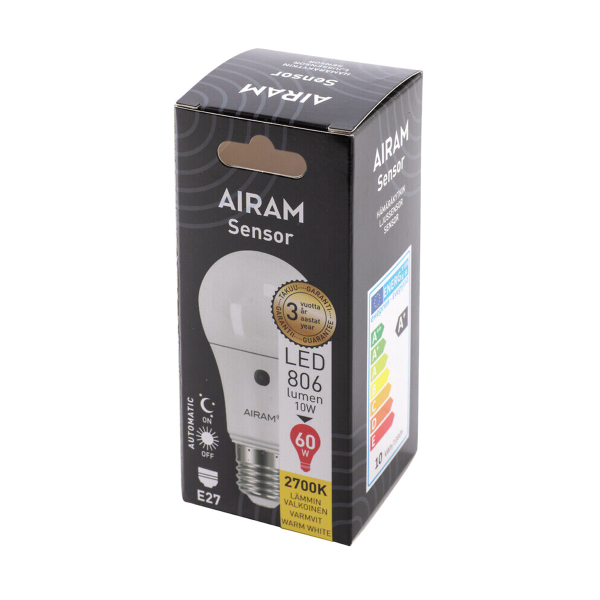 E27-kantainen, hämärätunnistimella oleva erikoislamppu. Valoteho 806 lumenia, avauskulma 200°, värilämpötila 2700K. Kolmen vuoden takuu.