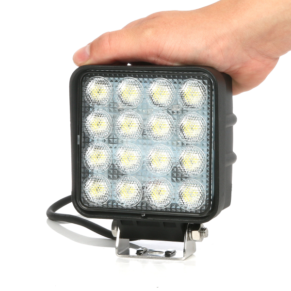 Nelikulmainen 48W LED-työvalo. Kirkas, leveä valokuvio. Neutraali 6000K-värilämpötila. Soveltuu niin 12V- kuin 24V-järjestelmiin. 24 kk takuu