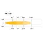 Lazer Linear 12 on tyylikäs yksirivinen lisävalopaneeli, joka edustaa matalaprofiilisten lisävalojen parhaimmistoa niin tekniikan, valaisuominaisuuksien kuin muotoilunkin puolesta. Linear-sarjan paneelit ovat ainoastaan 4 cm korkeita, mutta suorituskykyisten 3W ledien ja tyhjiömetalloidun optiikan ansiosta tämäkin paneeli tuottaa valmistajan mukaan jopa 4500 lumenin valotehon sekä todella tasaisen ja leveälle avautuvan yhdistelmävalokeilan, joka kantaa 349 metriin @ 1 lux. Korkeussuunnassa valokeila on tarkasti rajattu, joten kaikki valoteho ohjautuu kauas eteen sekä leveästi tien reunoille, eikä sitä huku turhaan taivaalle. Pystysuunnassa rajatun keilan ansiosta Linear 12 soveltuu hyvin myös mataliin asennuskohteisiin, sillä se ei muodosta keulan eteen kuljettajan näkyvyyttä heikentävää kirkasta "valopalloa". Lisäksi valaisin on varustettu tieliikennekäyttöön optimoidulla 5000K värilämpötilalla, joka tekee esteiden, liikennemerkkien ja tien yli juoksevien eläimien havaitsemisesta helpompaa.
