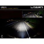 Lazer Linear 18 on tyylikäs yksirivinen lisävalopaneeli, joka edustaa matalaprofiilisten lisävalojen parhaimmistoa niin tekniikan, valaisuominaisuuksien kuin muotoilunkin puolesta. Linear-sarjan paneelit ovat ainoastaan 4 cm korkeita, mutta suorituskykyisten 3W ledien ja tyhjiömetalloidun optiikan ansiosta tämäkin paneeli tuottaa valmistajan mukaan jopa 6750 lumenin valotehon sekä todella tasaisen ja leveälle avautuvan yhdistelmävalokeilan, joka kantaa 428 metriin @ 1 lux. Korkeussuunnassa valokeila on tarkasti rajattu, joten kaikki valoteho ohjautuu kauas eteen sekä leveästi tien reunoille, eikä sitä huku turhaan taivaalle. Pystysuunnassa rajatun keilan ansiosta Linear 18 soveltuu hyvin myös mataliin asennuskohteisiin, sillä se ei muodosta keulan eteen kuljettajan näkyvyyttä heikentävää kirkasta "valopalloa". Lisäksi valaisin on varustettu tieliikennekäyttöön optimoidulla 5000K värilämpötilalla, joka tekee esteiden, liikennemerkkien ja tien yli juoksevien eläimien havaitsemisesta helpompaa.