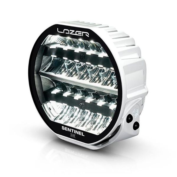 Lazer Sentinel 9 Elite Gen2 White on valkoisella rungolla varustettu versio päivitetystä Sentinel Elite -lisävalosta. Uudessa Gen2-versiossa on sama tuttu huippuluokan suorituskyky sekä vertaansa vailla oleva leveä yhdistelmävalokeila kuin edeltäjässäänkin, mutta näiden lisäksi valoon on tuotu koko linssin tyylikkäästi valaiseva, oranssina tai valkoisena palava parkkivalo, uniikki tervehdys-toiminto, jossa parkkivalo syttyy ja sammuu dynaamisesti tervehdykseksi sekä nk. "Flash To Dim"-toiminto, jonka avulla kuljettaja voi vaihtaa valon tehotilaa tieliikennehyväksytyn sekä rajoittamattoman tilan väliltä helposti aina halutessaan. Sentinel Elite Gen2 on varustettu 32:lla suurteholedillä, jotka saavat aikaan jopa 15232 lumenin valotehon, joka yhdistettynä tehokkaasti peilaaviin, tyhjiömetalloituihin heijastinpintoihin muodostavat jopa 742 metrin @ 1 lux kantaman pelkästään yhdellä valolla. Kun valoja asennetaan rinnakkain esim. 3 kpl, nousee valokeilojen yhteenlaskettu kantama jo lähes 1300 metriin.