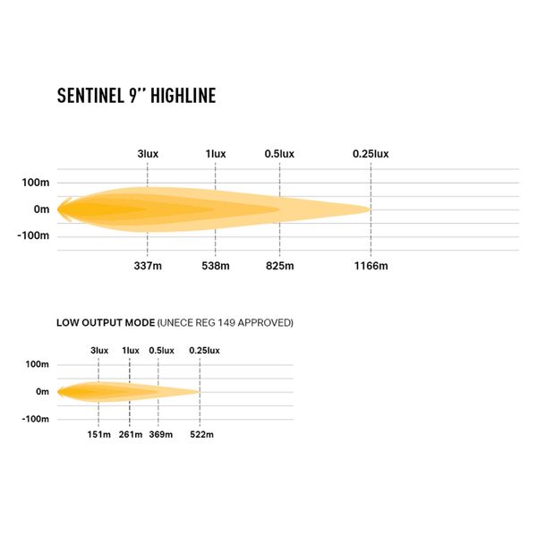 Lazer Sentinel 9 Highline Beacon on uusin lisäys valmistajansa Sentinel-tuoteperheeseen. Highline Beacon poikkeaa Sentinel-sarjan muista valoista tieliikennekäyttöön hyväksytyllä (R65) varoitusvalo-ominaisuudella sekä aimmeista malleista poikkeavalla, hieman korkeammalla valokeilalla. Korkeampi valokeila mahdollistaa lisävalon asentamisen tavallista ylemmäs, mikä tekee Highlinesta erinomaisen valinnan erityisesti rekkoihin ja muuhun raskaaseen kalustoon. Yhden valaisimen 20 suuritehoista lediä tuottavat valmistajan mukaan rajoittamattomalla E-Boost tilalla jopa 17020 lumenin valotehon, jolloin valokeilalle muodostuu kantamaa mallikkaat 583 metriä @ 1 lux. Kun valaisimia asennetaan rinnakkain esimerkiksi kolme, nousee kantama E-boost-tilassa jo yli kilometriin. R65-hyväksyttyä oranssia varoitusvaloa voidaan hyödyntää esim. erikoiskuljetuksissa, ajoneuvon siirtyessä maantieltä työmaalle tai liikenteenohjauksessa.