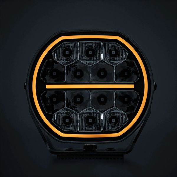 Moderni ja siro 7" lisävalo, joka on varustettu kahdella tehotilalla, yhdistelmävalokeilalla sekä oranssilla ja valkoisella parkkivalolla. Valmistajan ilmoittama valoteho 9100 lm, kantama 601 m @ 1 lux.