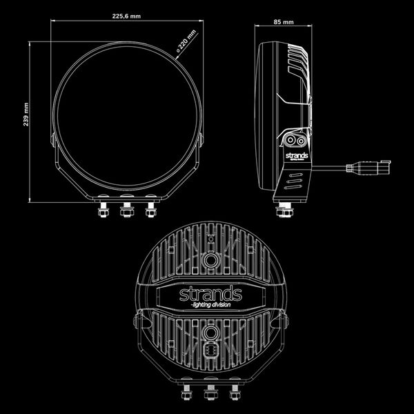 Strands Firefly Professional Black 9" on erityisesti ammattikuljettajien tarpeisiin hiottu pyöreä lisävalo, jonka ominaisuudet ovat huikea yhdistelmä tyyliä ja käytännöllisyyttä. Valaisin on varustettu mm. leveällä yhdistelmävalokeilalla, oranssilla ja valkoisella parkkivalolla, R65 Class 2 -hyväksytyllä varoitusvalolla (erilliset tilat yö- ja päiväkäyttöön) sekä poikkeuksellisella designilla, joka saa vaativimmankin silmän lepäämään. Yksi Firefly Professional tuottaa valmistajan mukaan jopa 12076 lumenin valotehon sekä 450 metriin (@ 1 lux) kantavan valokeilan, ja kun valaisimia asennetaan rinnakkain esim. neljä, kasvaa valokeilan kantama jo yli 900 metriin yhdellä luxilla. Valaisimen neutraali 5700K värilämpötila parantaa merkittävästi yössä liikkuvan kuljettajan näkyvyyttä maksimoimalla terävyyden ja tarkkuuden sekä vähentämällä pimeyden silmiin kohdistavaa rasitusta.