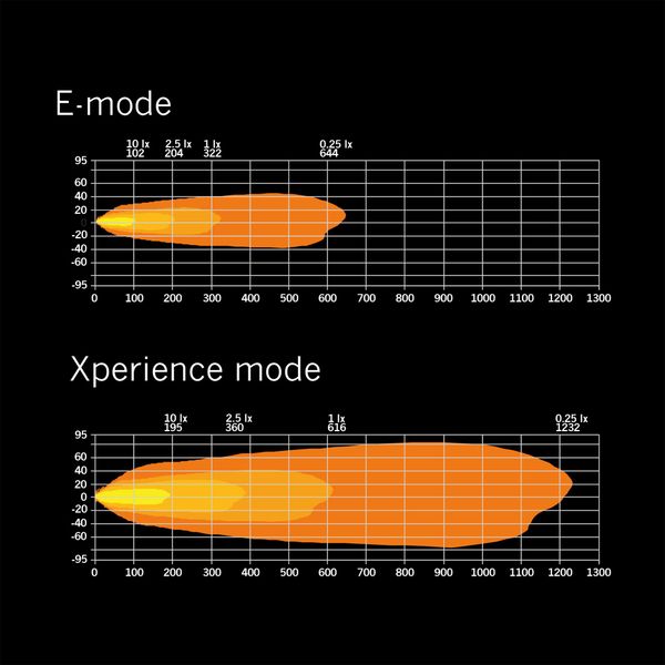 Maastokäyttöön suunniteltu tehokas kaareva lisävalo, joka on varustettu mm. kahdella tehotilalla, leveällä yhdistelmäkeilalla sekä keltaisella ja valkoisella parkkivalolla. Ilmoitettu valoteho 13030 lm, kantama 616 m @ 1 lux. Ei E-hyväksytty!