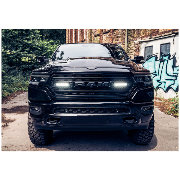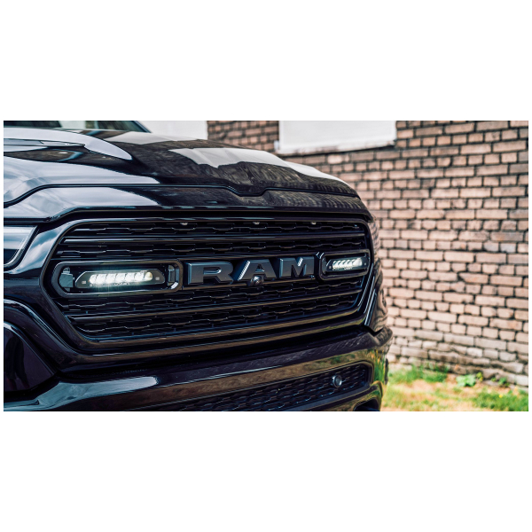 Täydellinen, kaiken tarvittavan sisältävä lisävalopaketti 2019-2023 Dodge RAM 1500 -henkilöauton etusäleikköön. Valaisimina toimii 2 kpl Lazer Linear 6 Eliteä.
