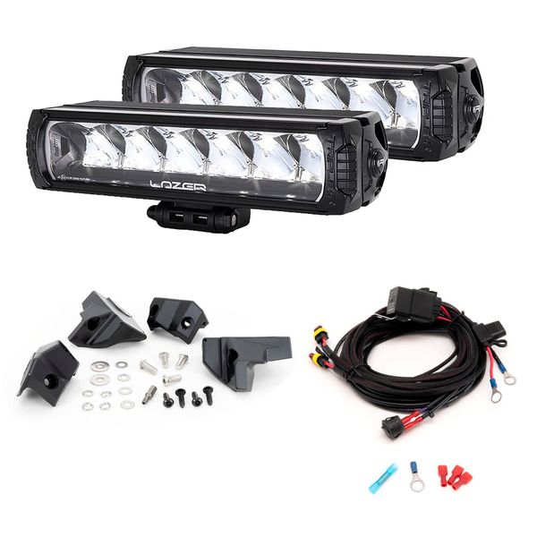Täydellinen, kaiken tarvittavan sisältävä lisävalosetti vuoden 2023 ja uudempien Ford Ranger Limited -ajoneuvojen etusäleikköön. Valaisimina toimii valintasi mukaan joko 2 kpl Lazer Triple-R 850 Gen2:sta tai 2 kpl Lazer Triple-R 850 Elite Gen2:sta.