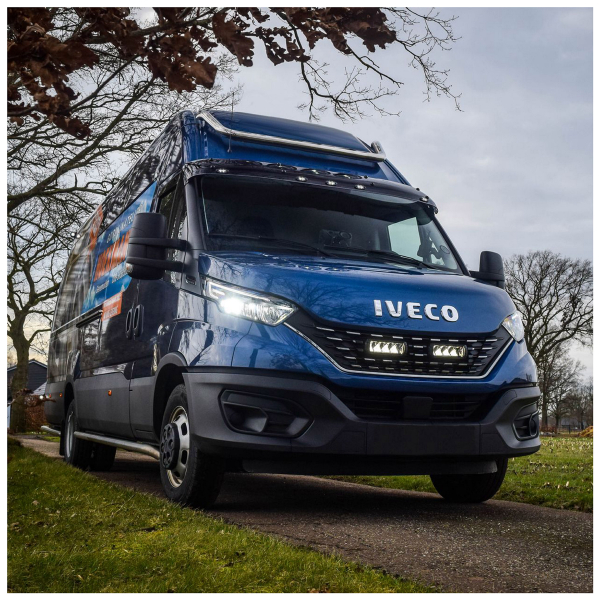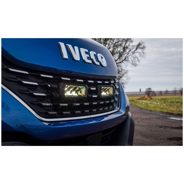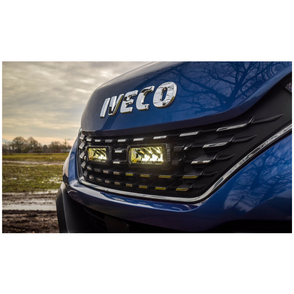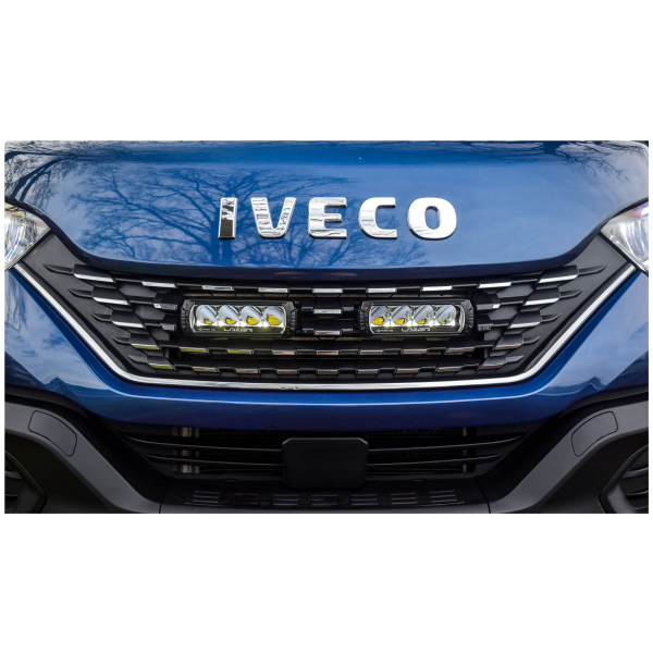 Täydellinen, kaiken tarvittavan sisältävä lisävalopaketti vuoden 2019 Iveco Daily -pakettiauton etusäleikköön. Valaisimina toimii 2 kpl Lazer Triple-R Elite GEN2:sta.
