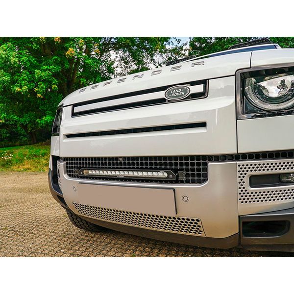 Täydellinen, kaiken tarvittavan sisältävä lisävalosetti vuoden 2020 ja uudempien Land Rover Defender -ajoneuvojen etusäleikköön. Valaisimina toimii Lazer Linear 18 Elite (Double E-Mark).